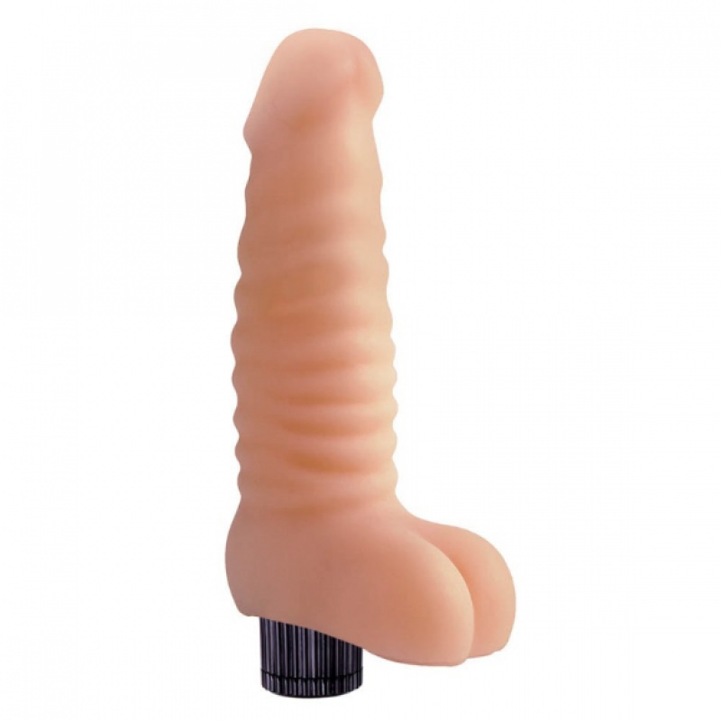 Real πολύ μαλακός σιλικονάτος δονητής 19 εκατοστά με ράβδωσεις και αρχίδια, άριστης ποιότητας. Αδιάβροχος, με δόνηση (Νο.13)